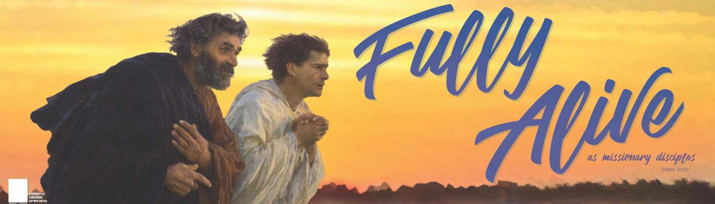 This past week, Fr. Blick and I attended the clergy conference with the Bishop and all of the other priests from the diocese of Wichita. Every year there is a theme for the conference, and this year the theme focused on the Bishop’s pastoral plan for the diocese. And if you have seen the stewardship posters for this year, they focus our attention on the core of the Bishop’s vision, because, in essence, the Bishop’s vision is that all of us, all of the faithful in the diocese of Wichita may become Fully Alive as Missionary Disciples! Fully Alive: permeated, imbued, radiating with the life that only comes from a life lived in relationship with Jesus Christ, a life invigorated and renewed by his Holy Spirit. Missionary Disciples: students and companions of the Lord ready to be sent out and share the joy of this new life with others. And the Bishop didn’t just make this up, he didn’t pull this out of thin air! No, this vision for our diocese comes directly from the mouth of Jesus himself! As we read in Saint John’s Gospel, Jesus says, “I have come that they may have life and have it to the full!”