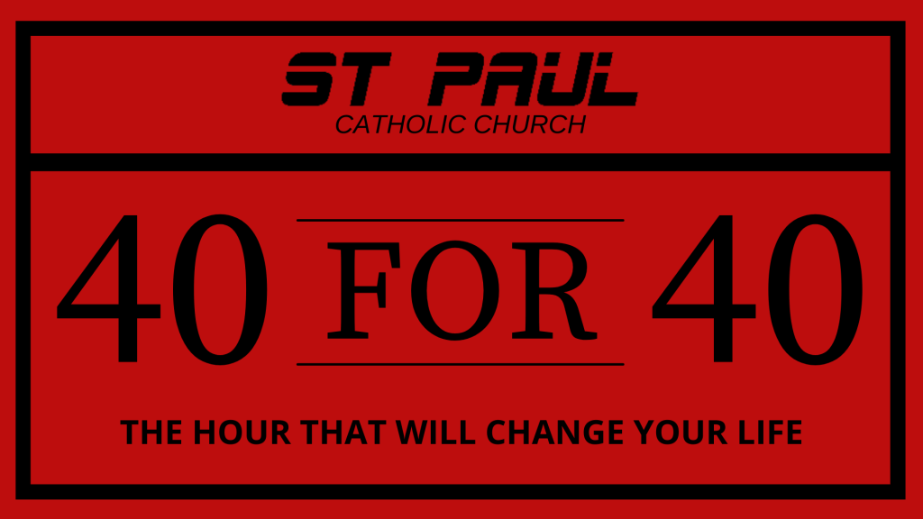So during the Forty Days of Lent, we will be doing Forty Hours Devotions each week. We’re calling it “40 for 40” (you know, just plagiarizing ESPN’s 30 for 30 documentary name). There are sign-up sheets under the TV in the gathering space; I would encourage you to make a commitment for this Lent. Prayer, fasting and almsgiving—prayer is something we do during Lent anyway, so this could be perfect. And I get it, committing to an hour of adoration a week can seem like a lot—but it can change your life. Adoration of the Eucharist can change your life—it changed mine. Don’t be afraid to sign up for those late hours of the night, the early hours of the morning! “Could you not watch one hour?”