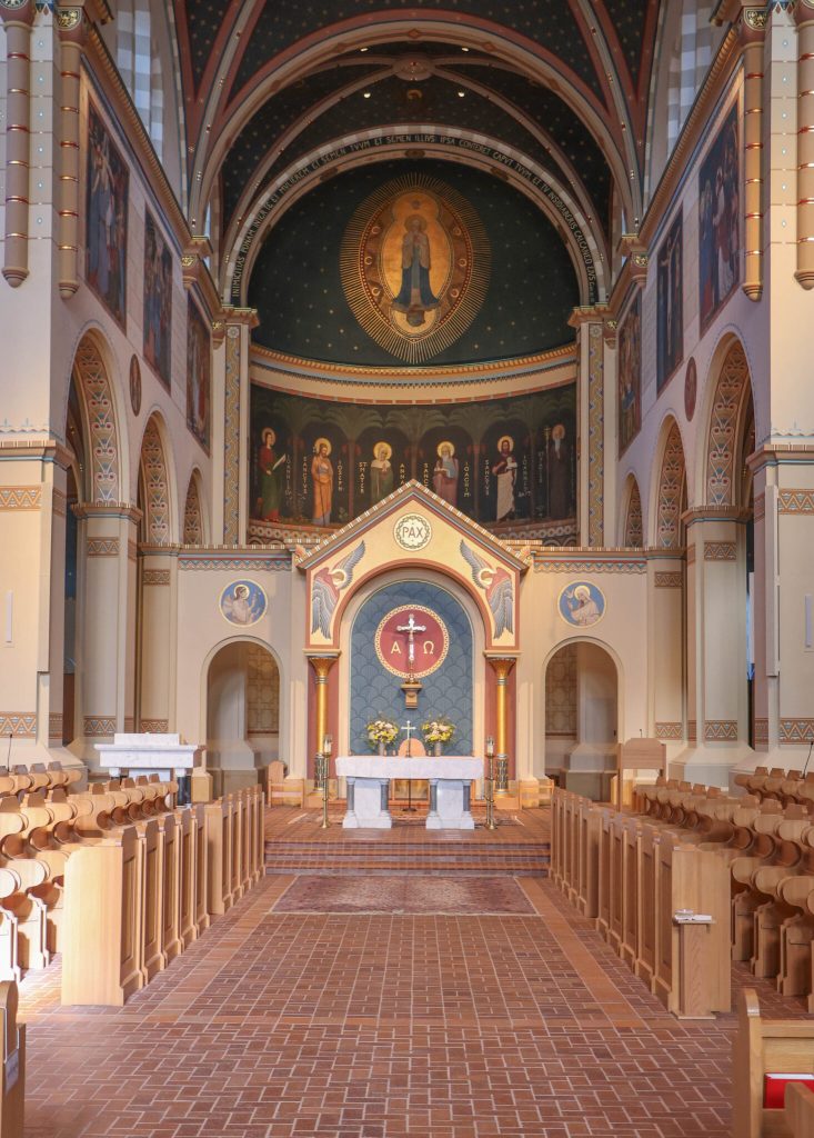 I’ve shared before how, for college, I attended college seminary at Conception Seminary College up in northwest Missouri, ‘bout an hour north of Kansas City. It’s attached to an old Benedictine Monastery, and there are something like seventy-five monks there. But at the center of the campus is this huge, beautiful basilica. Just gorgeous. And the way it’s is set up inside is the altar is here, and then there is an area where the monks sit, facing each other on either side of the aisle. And then the pews for everyone else begin. And it is just very solemn, very reverent.